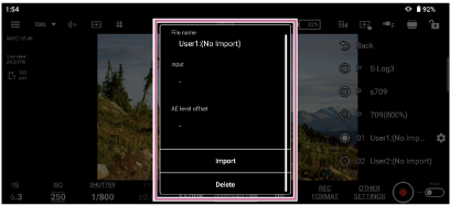 U kunt een LUT-bestand (.cube) dat op een bedieningsapparaat is opgeslagen naar een camera importeren.