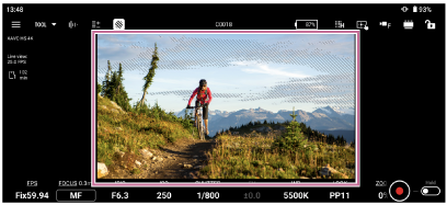 顯示在 S-Log3 中拍攝時轉換為 ITU709(800%) 等效值的即時檢視。