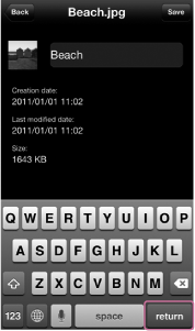 يتم تغيير اسم الملف/المجلد ثم تعود الشاشة إلى شاشة المعلومات للملف/المجلد.