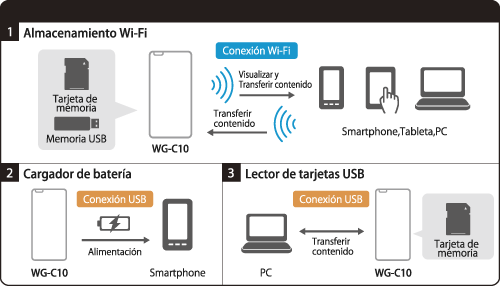 Puede reproducir/visualizar datos en una tarjeta de memoria insertada en esta unidad, en un teléfono inteligente, tableta u ordenador conectados de forma inalámbrica.