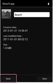 Tik op [Bewaren(Save)] of [Vorige(Back)] om terug te keren naar het lijstscherm met bestanden/mappen.