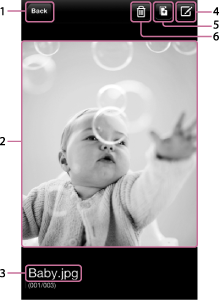 Коснитесь этого значка, чтобы вернуться к экрану со списком файлов/папок.