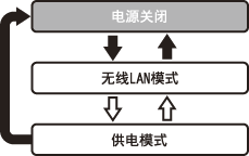 - 当在供电模式中时:无线局域网指示灯熄灭和供电指示灯稳定点亮。