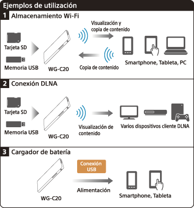 Al utilizar la función LAN inalámbrica, puede reproducir archivos (fotos, música, vídeos, documentos) en una tarjeta SD insertada en esta unidad o en un dispositivo conectado mediante USB, en un teléfono inteligente, en una tableta o en un ordenador.