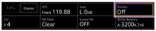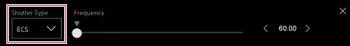لتعديل وقت التعريض الضوئي ليلائم الفاصل الزمني للإطار، حدد [Off] في الخطوة 2. يمكنك أيضًا تعيين قيمة ثابتة باستخدام [ECS] (تردد) أو تعديلها تلقائيًا باستخدام [Auto].
