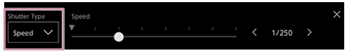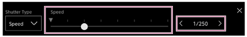 اضبط الغالق باستخدام شريط التمرير [Speed] أو أزرار التعديل [Speed].