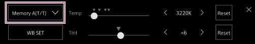 يعدل هذا الوضع موازنة البياض المحفوظ في الذاكرة A عن طريق تعديل درجة حرارة اللون (Temp) وTint.