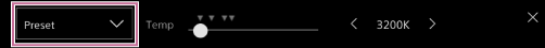 يؤدي الضغط على زر [Reset] الموجود على الجانب الأيمن من [Temp] أو [Tint] إلى استعادة الإعداد المقابل إلى القيمة الافتراضية.
