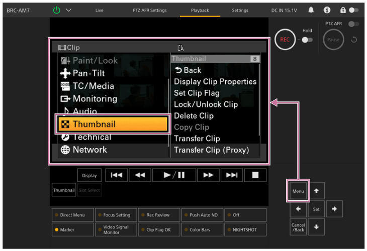 | قائمة [Thumbnail] | تحتوي على إعدادات بشاشة الصور المصغرة. |