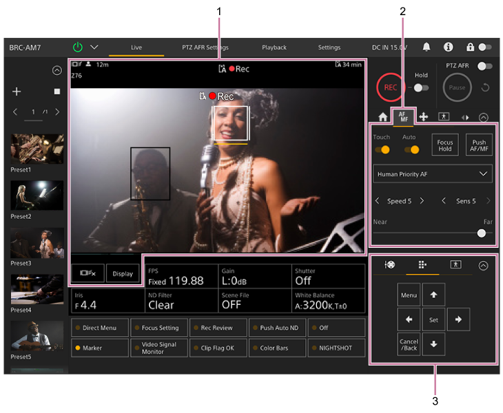 يتم تعديل التركيو البؤري باستخدام الأجزاء التالية من شاشة التشغيل المباشر لتطبيق الويب.