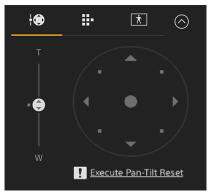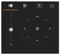 - يتم عرض جزء عصا التحكم للوحة التحكم في التأطير كما هو موضح أدناه عند تعطيل تشغيل التدوير/الإمالة وعندما تكون تهيئة التدوير/الإمالة مطلوبة.