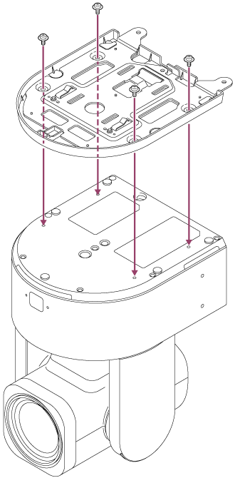 قم بتركيب ذراع التثبيت بالسقف (A) بالجزء السفلي من الوحدة باستخدام البراغي الأربعة المرفقة (8×M3).