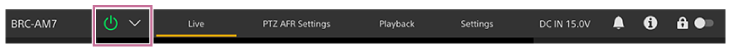 اضغط على مفتاح الطاقة وحدد t [Power ON] في قائمة المفتاح. يتم تشغيل الوحدة، ويضيء مصباح POWER باللون الأخضر في مقدمة الوحدة، وتظهر صورة الكاميرا على شاشة التشغيل المباشر لتطبيق الويب.