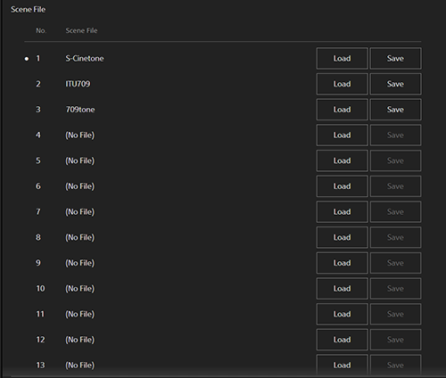اضغط على زر [Load] لتحميل مشهد الملف من الجهاز الذي يشغّل تطبيق الويب. لمزيد من التفاصيل، راجع «تحميل ملف مشهد محفوظ على جهاز خارجي على الذاكرة الداخلية».