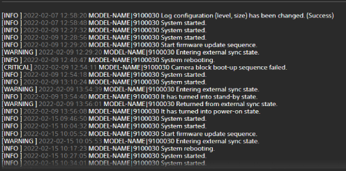 | [Download as File] | – | – | اضغط على زر [Download] واحفظ سجل النظام على جهاز لوحي أو حاسوب آلي من الشاشة المعروضة. |