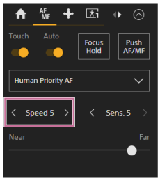 Puede establecer la velocidad de la unidad de enfoque para cuando el sujeto cambia usando el botón [AF Transition Speed] en el panel de control de la cámara.