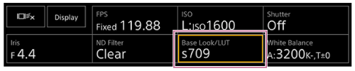 Appuyez sur la touche [Base Look/LUT] dans le panneau de configuration de base de la caméra.