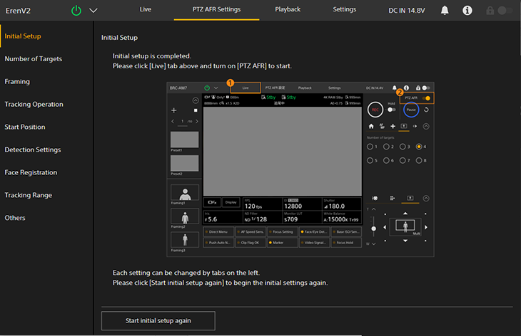 Viene visualizzata la schermata [Initial Setup] della schermata delle impostazioni PTZ AFR.