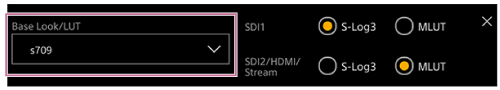 카메라 기본 구성 패널에서 [Base Look/LUT] 버튼을 누릅니다.