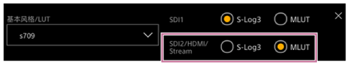 选择[SDI2/HDMI/Stream] – [MLUT]。