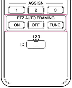 按下ON按钮可打开PTZ自动取景构图功能。在PTZ自动取景构图功能暂停时按下ON按钮可恢复PTZ自动取景构图。