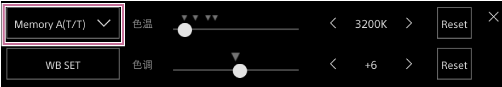 按下[白平衡]按钮,并从列表中选择[Memory A (T/T)]或[Memory A (R/B)]。