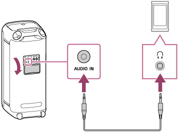 Apabila fungsi Pasangan Stereo atau fungsi Party Connect sedang digunakan, pembesar suara tidak mampu mengeluarkan muzik yang dimainkan pada peranti yang disambungkan ke jek AUDIO IN menggunakan kabel audio.