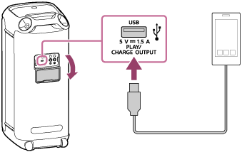 Подключите устройство USB, например смартфон или iPhone, к порту PLAY/CHARGE OUTPUT (USB) с помощью кабеля USB (приобретается отдельно).