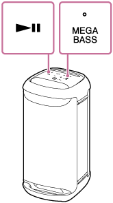 (відтворення) і MEGA BASS на динаміку, доки динамік не вимкнеться (5 секунд або більше).