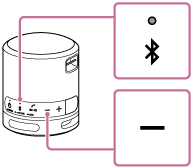 Při zapnutém reproduktoru stiskněte a podržte tlačítko – (hlasitost) a tlačítko