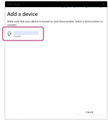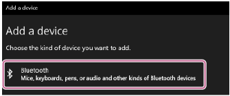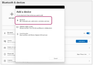 Kliknutím na přepínač [Bluetooth] zapněte funkci BLUETOOTH a pak klikněte na položku [Add device].