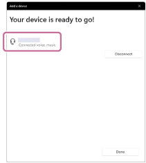 Po spárování se automaticky sestaví připojení BLUETOOTH a na obrazovce se zobrazí položka [Connected music] nebo [Connected voice, music]. Pokračujte krokem