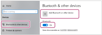 Klikněte na kartu [Bluetooth & other devices], kliknutím na přepínač [Bluetooth] zapněte funkci BLUETOOTH a pak klikněte na položku [Add Bluetooth or other device].
