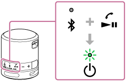(napájení) dvakrát zeleně.Když je reproduktor připojen k zařízením BLUETOOTH, jsou všechna připojení automaticky ukončena a pak znovu sestavena, a nové nastavení je aplikováno.