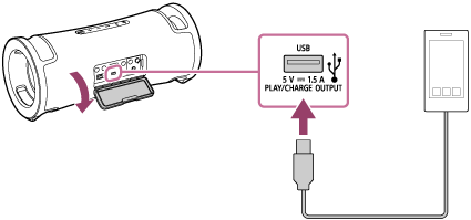 Подключите устройство USB, например смартфон или iPhone, к порту PLAY/CHARGE OUTPUT (USB) с помощью кабеля USB (приобретается отдельно).