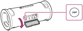 Нажмите кнопку LIGHT под крышкой на задней стороне динамика для включения/выключения функции подсветки.