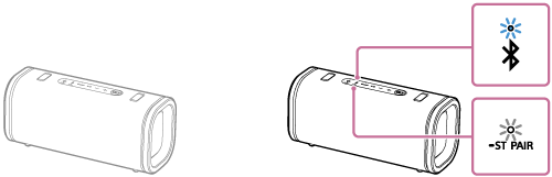 (BLUETOOTH) والمبين ST PAIR (الإقران الستيريو) الموجود بمُكبِّر الصوت وميضًا بطيئًا. في حوالي 5 ثواني، ستسمع صوت الإشعار من مُكبِّر الصوت، وسيتوقف المبين ST PAIR (الإقران الستيريو) عن الوميض وسيظل مضيئًا.