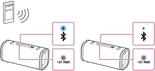 (BLUETOOTH) y el indicador ST PAIR (Pareja estéreo) del altavoz parpadearán lentamente. En aproximadamente 5 segundos, volverá a escuchar el sonido de notificación del altavoz y el indicador ST PAIR (Pareja estéreo) dejará de parpadear y permanecerá encendido.