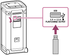 Tilslut en USB-enhed til PLAY/CHARGE OUTPUT-porten (USB) på højttaleren.