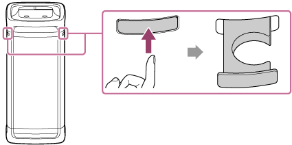 Sie können Mikrofone (im Handel erhältlich) in die Mikrofonhalter einsetzen. Um die Mikrofonhalter zu verwenden, drücken Sie sie mit dem Finger darauf, um sie zu öffnen.