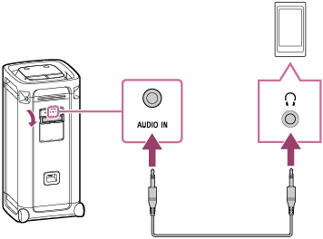 Stereo Pair機能およびParty Connect機能を使用しているときは、AUDIO IN端子に有線接続された機器の音楽を聞くことはできません。