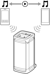 เล่นเพลงในขณะที่ลำโพงเชื่อมต่อกับอุปกรณ์ 2 เครื่องในการเชื่อมต่อแบบหลายจุด