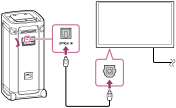 1. وصّل مقبس خرج بصري موجود بالتليفزيون وموصل OPTICAL IN (دخل صوت رقمي بصري) الموجود بمُكبِّر الصوت بواسطة الكابل الرقمي البصري المُرفق.