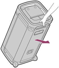 Хванете с една ръка средата на ръкохватката, която е от същата страна на тонколоната като колелцата, и я преместете тонколоната дърпайки я, като се уверите, че тя се търкаля върху колелцата.