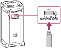 Připojte zařízení USB k portu PLAY/CHARGE OUTPUT (USB) na reproduktoru.