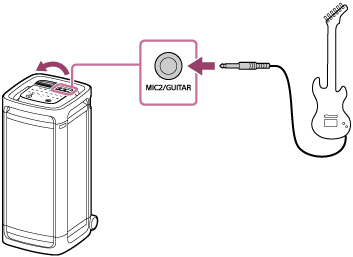 Podłącz gitarę do gniazda MIC2/GUITAR na górnej powierzchni głośnika za pomocą kabla instrumentalnego do podłączania gitary (dostępnego w sprzedaży).