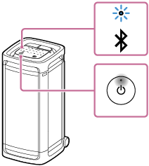 (BLUETOOTH) บนลำโพงจะกะพริบช้า ๆหากมีอุปกรณ์ BLUETOOTH ที่เคยเชื่อมต่อไว้ก่อนหน้าอยู่ใกล้เคียง ลำโพงจะเชื่อมต่อกับอุปกรณ์ดังกล่าวโดยอัตโนมัติ และไฟแสดง