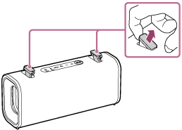 Odstraňte háčky ramenního popruhu z upevňovacích poutek na reproduktoru.