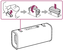 Поверніть кришку для зберігання з правого боку проти годинникової стрілки, як показано на малюнку. Стискаючи і піднімаючи пальцями петлю кріплення, натисніть на кришку для зберігання, щоб вона опустилася вниз.