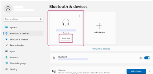 按一下[Bluetooth]開關以開啟BLUETOOTH功能,然後再按一下[Add device]。